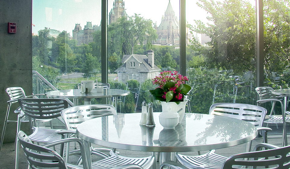 The Cafeteria offers daily specials, salad and dessert bars, kids menu, made-to-order sandwiches and more in an informal, self-service atmosphere. It also features a glass rotunda, a private patio and an inspiring view of Nepean Point, the Ottawa River and Parliament Hill.